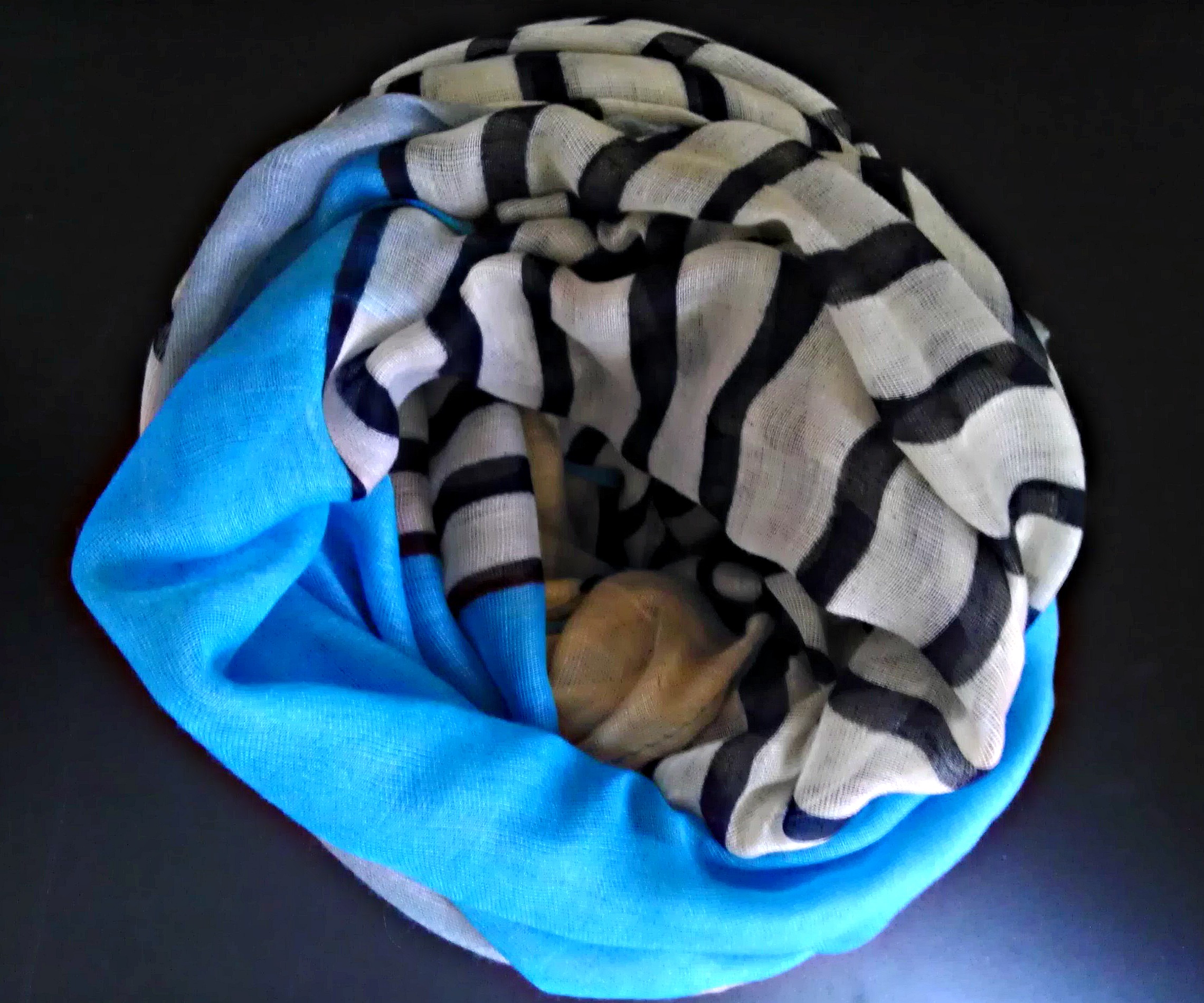 Sheer stripe infinity scarf. This is a statement accessory for any fall outfit.