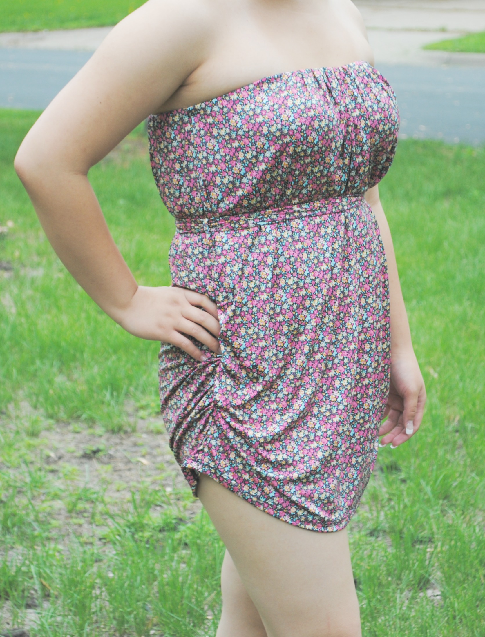 This strapless dress dare to flirt with its thigh high cinches on the sides.