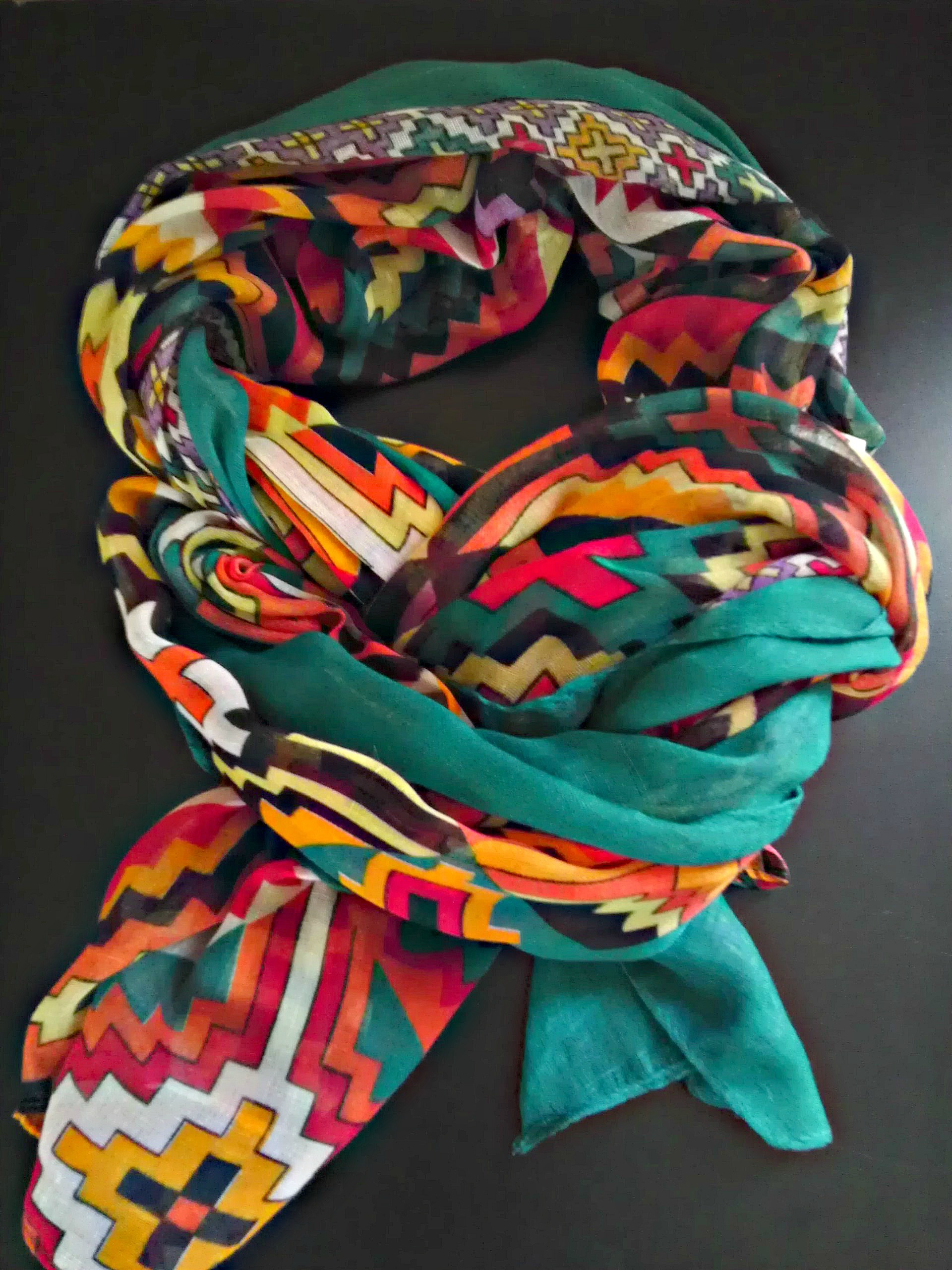 Sheer geometric print scarf. This is a statement accessory for any fall outfit.