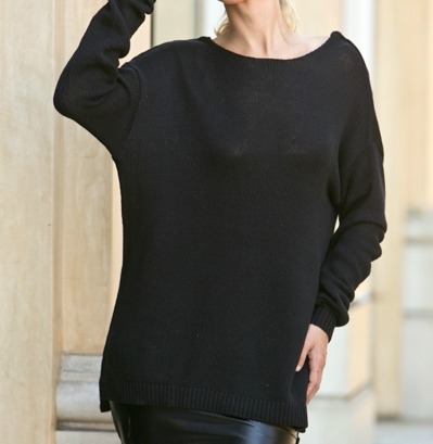 Leather band back detailed Loose fit knit top 60% Cotton 40% Acrylic. Made in China.